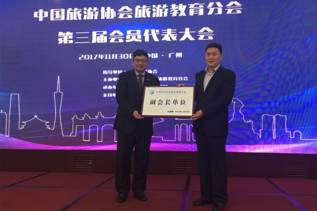 本网讯 (旅游与酒店管理学院 石媚山) 11月30日到12月1日,由中国旅游协会旅游教育分会主办、中山大学旅游学院承办的中国旅游协会旅游教育分会第三届会员代表大会暨国际旅游教育研讨会在广州中山大学顺利举行。我院院长姜玉鹏、副院长刁洪斌、旅游与酒店管理学院副院长石媚山应邀参会。会上,姜玉鹏当选为中国旅游协会旅游教育分会第三届理事会副会长;刁洪斌向与会专家学者作了题为《基于学生心理成长及职业发展的酒店管理专业顶岗实习模式创新》的主题演讲。