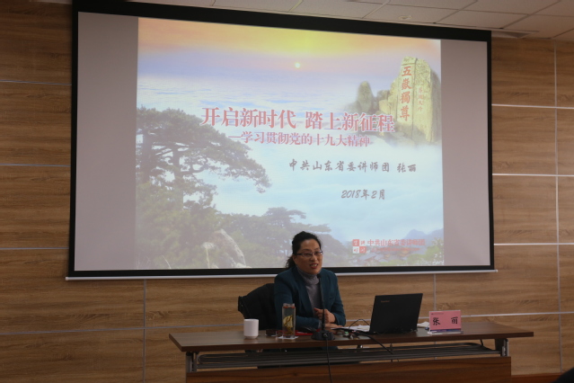培训班上,省委讲师团副团长、省委学习贯彻党的十九大精神宣讲团省直机关分团副团长张丽教授受邀为全体党员干部作了题为《开启新时代 踏上新征程——学习贯彻党的十九大精神》的辅导报告。张丽教授在报告中紧紧围绕党的十九大鲜明主题,从新时代、新思想、新目标、新举措、新要求等方面,运用生动鲜活的数据、案例,系统透彻、深入浅出地对十九大精神作了阐释和明白透彻的解读。报告具有很强的理论性、实践性和指导性,对学院党员干部更好地理解和准确把握习近平新时代中国特色社会主义思想和党的十九大精神具有重要的指导作用。