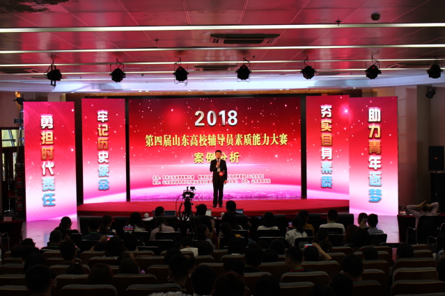 本网讯(学生工作处 孙毅)5月12日—13日,由中共山东省委高校工委、教育部高校辅导员培训和研修基地(山东大学)主办,山东高校辅导员工作研究及培训基地(山东建筑大学)承办的第四届山东高校辅导员素质能力大赛在济南举行。我院艺术学院辅导员于友鹏在比赛中沉着应战、发挥稳定,获得一等奖。我院也成为近三届比赛中全省唯一一所蝉联本项赛事一等奖的高职院校。