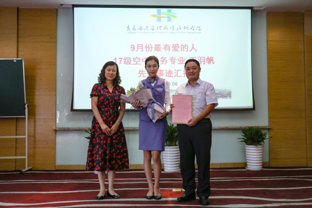 刁洪斌现场向王羽帆献花,向街道办表示感谢。他说,王羽帆同学的行为让我们感动,让学校感到骄傲,充分肯定了对王羽帆同学在此次事件中表现出的友善、勇气和智慧。刁洪斌认为,学校教育不仅仅是专业教育,人文教育也很重要,更应该让孩子们有生命意识、感恩意识。王羽帆的善举,完美阐释学校“爱心、实力、责任”的校风,事件中的行为更是学院“勤真灵雅”校训的展现。正值2018级新生报到之时,学院会大力宣传王羽帆同学的见义勇为善举,营造学习其优秀品质的氛围,上好“开学第一课”,进一步做好学校的育人工作,引导学生树立正确的价值观和人生观服务社会、回报社会。