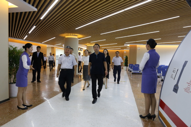 高洪雷一行现场考察了学院党建长廊、工商管理学院菜鸟驿站、酒店工程学院实训室、空乘实训室、旅游与酒店管理学院实训中心。随后,在办公楼四楼会议室召开座谈会,高洪雷听取了学院党委书记李达的工作汇报,对学院的办学情况、党建工作、特色发展、产教融合、开放办学、下一步工作打算做了详细了解。