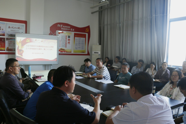 本网讯(酒店工程学院 薛陆)近日,酒店工程学院党总支举行新学期首期“先锋讲堂”学习活动,全体党员集体学习《习近平新时代中国特色社会主义思想三十讲》之第二十八讲——毫不动摇把党建设得更加有力,学习活动由酒店工程党总支书记解强主持。