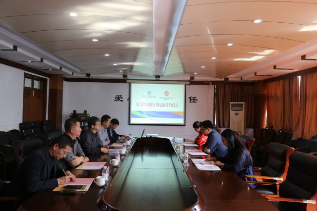 宫恩龙为实训基地揭牌,王昌玉代表学院与企业签订共建“混合所有制实训基地”协议。