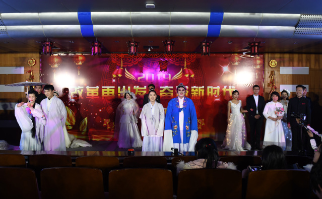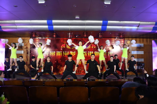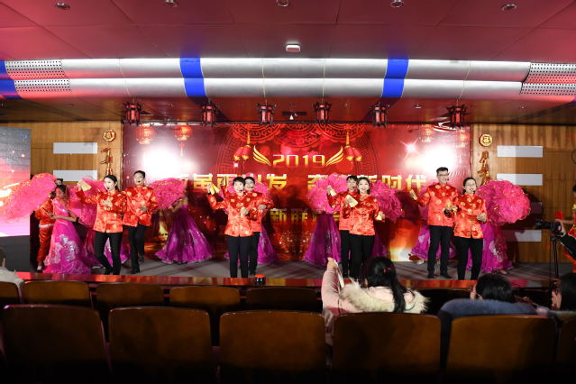 联欢会以《春到福来》歌舞开场,融入歌曲、舞蹈、太极拳、情景剧、诗朗诵、服装展示等多种艺术形态,迎接2019年的到来,向改革开放40年献礼。朗诵《辉煌这一年》、搏击操啦啦操《2019重拳出击》、太极拳表演 、服装展示《艺Show》、歌曲《我的小宝贝》、歌曲串烧《回忆青春》、情景剧《匠心》等精彩纷呈的节目轮番登场,联欢会在《我们的新时代》的歌舞表演中落下帷幕。