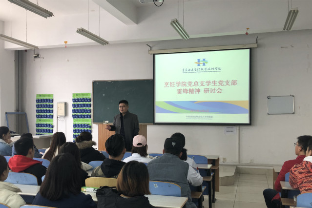 烹饪学院学生党支部召开雷锋精神研讨会,全体辅导员和入党积极分子参会,辅导员老师们逐一发言,要求加强理论学习,树立榜样意识,争做时代楷模