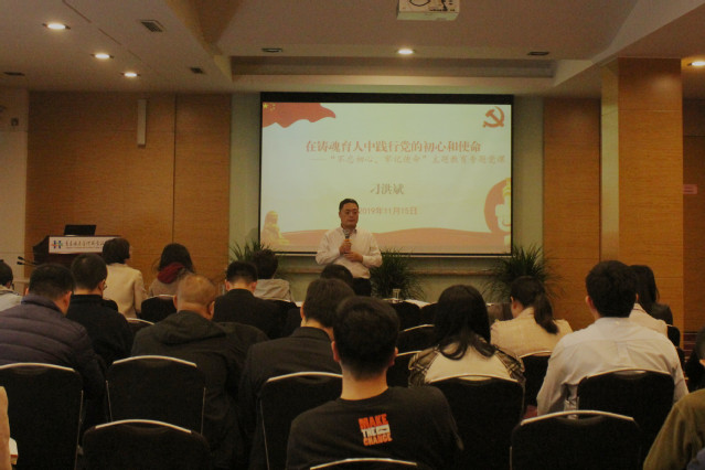 本网讯(旅游与酒店管理学院 张妍)11月15日下午,学院副院长、旅游与酒店管理学院院长刁洪斌以《在铸魂育人中践行党的初心和使命》为题,为旅游与酒店管理学院党总支讲授专题党课,旅游与酒店管理学院党总支全体成员参加学习。