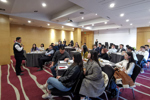 本网讯(团委 徐豪杰)近日,学院2019年酒店管理专业顶岗实习学生压力源研讨会在旅游与酒店实训中心一楼多功能厅举行。学院副院长刁洪斌,团委书记李柯,旅游与酒店管理学院实习带队老师, 15名顶岗实习学生代表参加了会议。
