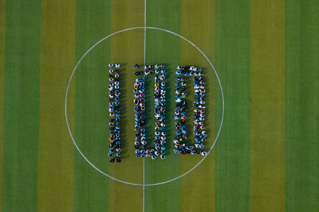 文旅学院全体在校生在学院体育场整齐列队,摆出“党徽”、“100”、“2021”等造型,以独特的方式向中国共产党成立100周年献礼。同学们个个精神饱满、眼神坚定,彰显了自己的爱党、爱国、爱校情怀,展示了青春的风采与力量。