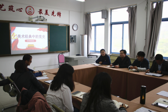结合艺术学院专业特色,“以画为体,以史为魂”。艺术学院党总支选取中央广播电视总台推出的百集特别节目《美术经典中的党史》作为学习素材,开展每周一次的“美术经典中学党史专题教育”系列活动。《美术经典中的党史》选取了100幅红色经典美术作品,邀请权威党史专家和美术专家深入浅出地讲述画作的创作历程及鲜活的党史故事。“美术经典中学党史专题教育”系列活动将党史与美术经典巧妙结合,融党史题材和艺术之美于一体,实现了专业教育与党建、思政的同频共振。
