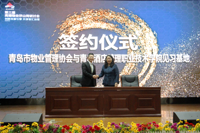 本网讯(酒店工程学院)4月29日,酒店工程学院副院长张勇参加青岛市第三届高端物业浮山湾研讨会,并与青岛市物业管理协会签约共建见习基地。
