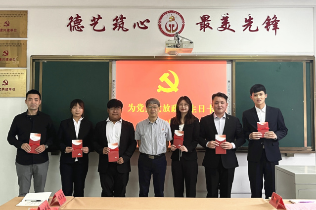 艺术学院党总支在党员活动室开展“不忘初心 牢记使命”主题党日。学校党委委员、副院长宫恩龙与师生党员座谈交流并为新发展党员发放“党员政治生日卡”,用温馨的方式为他们度过第一个政治生日,让党员们感受到来自组织的关怀、来自“家”的温暖。艺术学院党总支书记王莹带领现场新发展党员进行了入党宣誓、带领其他党员重温入党誓词。新发展党员代表、2020级学生崔世延作表态发言。师生党员们表示,将不忘初心、牢记使命,以更加坚定的信念、更加高昂的斗志、更加过硬的作风,全力以赴做好教育教学工作。