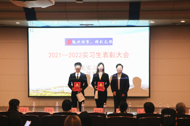 2021-2022学年度,酒店管理学院共有895名同学参加岗位实习,分布在北上广深等全国15个重点城市的82家实习单位中。校企双方共同评选出14支优秀实习团队、22名优秀实习队长和147名优秀实习生。同时,经过海选、专家评审和网络投票,评选出了20位最美实习生。会上,万豪酒店集团、希尔顿酒店集团、洲际酒店集团、香格里拉集团、凯悦酒店集团、四季酒店集团旗下40多家酒店高管发来祝贺视频,对学校及实习生表示感谢和肯定。此外,山东大厦等9家企业提供了特等奖学金。
