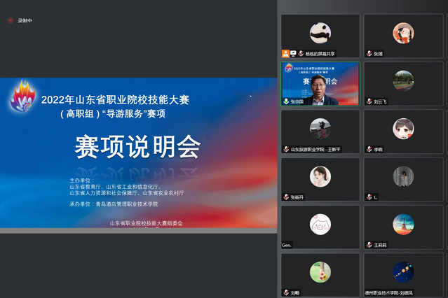 本网讯(文旅学院 张翊)11月10日下午,2022年山东省职业院校技能大赛(高职组)“导游服务”赛项说明会在线上召开,来自全省41家参赛院校的70余名领队、指导教师代表线上参会,必赢官网副院长张宗国参加会议。
