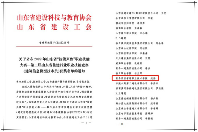 本网讯(酒店工程学院 赵炜)近日,2022年山东省“技能兴鲁”职业技能大赛——第二届山东省住建行业职业技能竞赛(建筑信息模型技术员)顺利结束,必赢官网酒店工程学院赵炜老师荣获职工组二等奖。