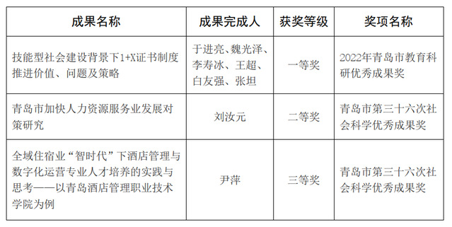 本网讯(科研发展处 魏有广)日前,在2022年度青岛市教育科研优秀成果奖评审中,学校荣获一等奖1项;在青岛市第三十六次社会科学优秀成果奖评审中,学校荣获二等奖1项、三等奖1项。