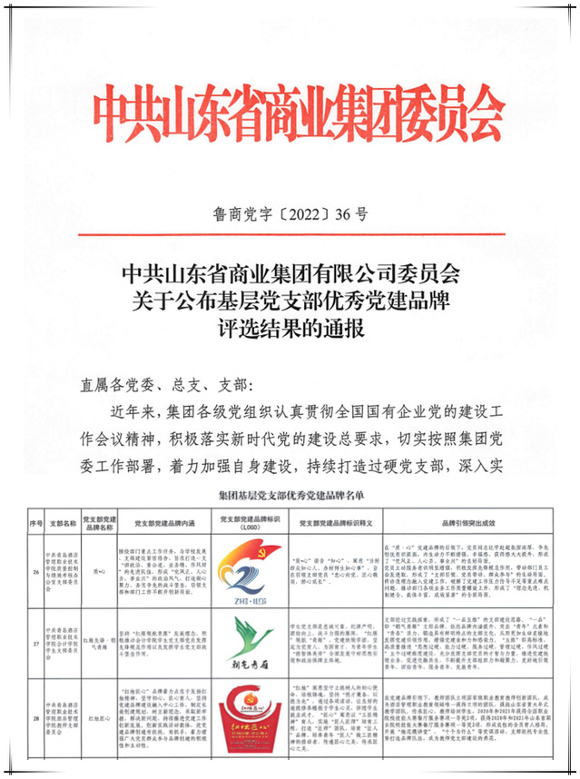 本网讯(组织人事处 吕丽)近日,山东省商业集团有限公司党委公布了基层党支部优秀党建品牌评选结果,必赢官网质量控制与绩效考核办公室党支部、会计学院学生党支部、酒店管理学院教师党支部党建品牌获评集团首批基层党支部“优秀党建品牌”。