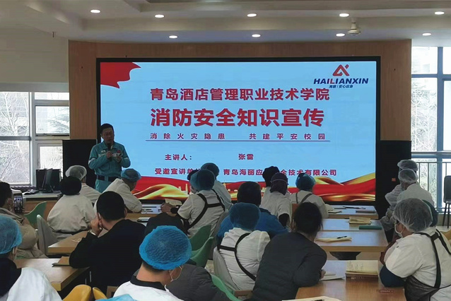 本网讯(总务处 侯鹏)为进一步提高学校食堂员工消防安全意识和安全生产素质,3月17日,总务处邀请了政安消防成员单位青岛海丽应急安全技术有限公司高级讲师张雷以及学校安全保卫处工作人员,为学校餐厅从业人员进行了消防安全知识专题培训。