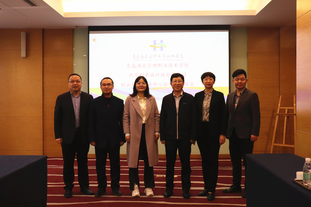 仪式上,张宗国和梁海燕代表校企双方签约,酒店管理学院院长冷雪艳和北京利君成科技有限公司技术总监左亮亮为协同创新中心揭牌。企业向学校捐赠价值30万元的餐饮服务流程演练虚拟教学系统和茶艺与服务虚拟教学实训系统。