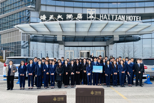 本网讯(酒店管理学院 王志飞)近日,酒店管理学院组织2022级酒店管理与数字化运营、国际邮轮乘务管理、空中乘务、民宿管理与运营、葡萄酒文化与运营5个专业共计990名学生分批次赴青岛鲁商凯悦酒店、融创阿朵花屿等二十余家单位进行参访体验。