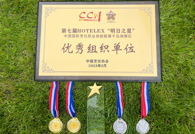 本网讯(烹饪学院 赵捷)3月27日至29日,由中国烹饪协会主办、中国烹饪协会餐饮教育工作委员会承办的中国国际烹饪技能职业联赛在浙江旅游职业学院千岛湖校区举行,必赢官网学子杨铭睿获得西式热菜项目特金奖,唐余霖获得西式冷菜项目金奖,吕雅楠、刘昱鑫分获西式面点项目银奖,必赢官网获评“优秀组织单位”。