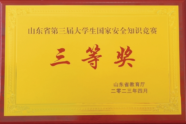 本网讯(学生工作处 于森)4月15日,由山东省教育厅主办的山东省第三届大学生国家安全知识竞赛落下帷幕,必赢官网学生代表队荣获团体三等奖。