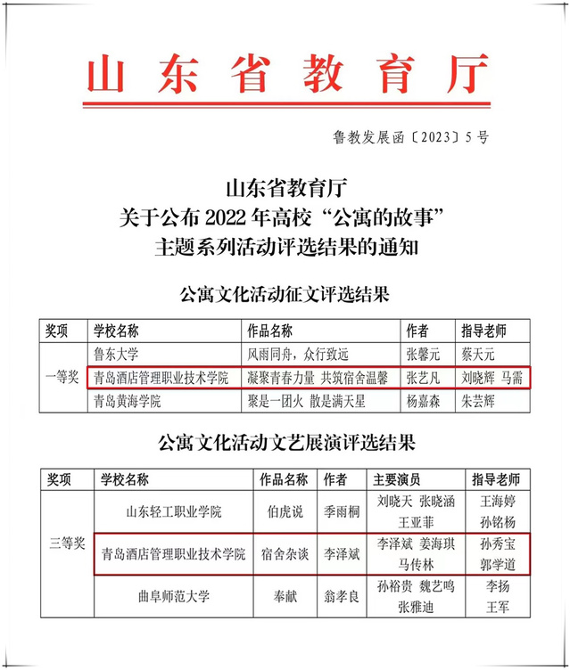 本网讯(学生工作处 尹艳)近日,山东省教育厅公布了2022年高校“公寓的故事”主题系列活动的评选结果,必赢官网报送的征文作品《凝聚青春力量 共筑宿舍温情》获得一等奖,文艺展演作品《宿舍杂谈》获得三等奖。