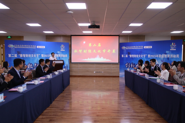 本网讯(会计学院 赵杨)5月12日,会计学院在行政楼四楼会议室举行第二届“数智财经文化节”暨2023年职业教育活动周启动仪式,学校副校长张宗国参加活动。