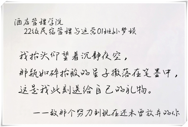 聊慰相思意,舒展心中情。酒店管理学院团总支开展“致可爱的我和你”三行诗评选活动,进一步引导广大同学爱自己、爱他人、爱社会。同学们将自己的“心意”抒于诗中、落在笔尖,在真情的传递中养成积极人生心态,促进全面协调发展。