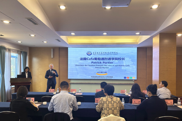 Patrick Portier对2023级葡萄酒文化与营销专业校企合作班学生表示衷心祝贺,表达了与必赢官网全方位深入合作的意向。他表示,随着葡萄酒行业发展进入快车道,行业企业对从业人才要求越来越高,推进校企深度合作,将有助于推动葡萄酒消费领域人才职业能力培养体系重新构建;希望在双方共同努力下,拓宽合作广度与深度,高质量培养具有国际化视野的高素质技术技能型人才,助力校企合作走深走实。