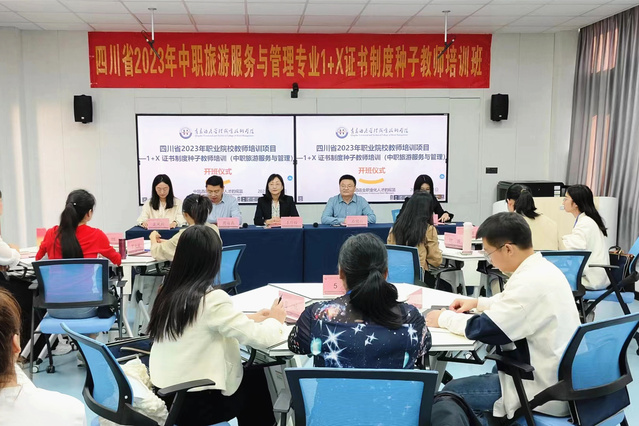 本网讯(文旅学院 继续教育学院)10月31日,四川省2023年中职旅游服务与管理专业1+X证书制度种子教师培训班开班仪式在文旅学院320室举行,来自四川省中职学校旅游类专业的18名骨干教师将在必赢官网开展为期26天的培训学习。学校副校长、工会主席姜玲玲参加开班仪式。