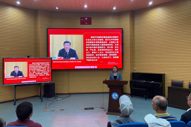 在青岛烹饪职业学校开展“建设美丽中国——学习习近平生态文明思想”微党课,马克思主义学院党支部书记、副院长李瑶围绕“生态兴则文明兴、从现代化变迁看生态文明、绿水青山就是金山银山”三个方面,与现场居民及师生展开交流,帮助大家进一步深化对习近平生态文明思想的理解和把握。