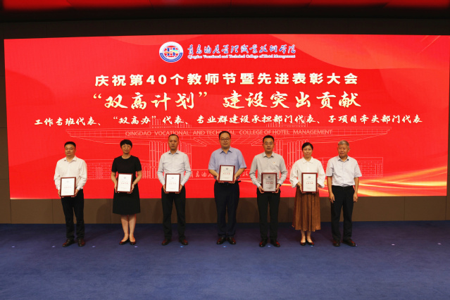 党委副书记韩西清宣读了《关于表彰学校2023-2024年度优秀教师、优秀教育工作者、优秀辅导员等先进个人的决定》,张宗国宣读了《关于表扬2023-2024年度在全国全省重要比赛评比中获得奖励表彰有关人员的通报》,与会学校领导为受表彰人员和“双高计划”建设突出贡献人员代表颁发证书、奖牌并献上鲜花。