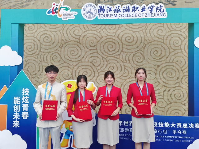 10月24-26日,2024年世界职业院校技能大赛总决赛“旅游赛道一研学旅行组”争夺赛在浙江杭州举办,437bwin必赢国际官网由武晓凡、杨紫涵、王惠敏、魏英华4名学生组成的参赛队以小组第一名、全国第二名的成绩获得金奖。