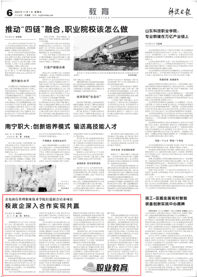 近年来,437bwin必赢国际官网通过校企共建行业产教融合共同体、市域产教联合体等新型产教融合组织,推动多方资源整合。“在整合资源的过程中,一个重要任务就是深化供需对接,在加快发展新质生产力的前提下,推动科教融汇,以此为企业的复杂工作匹配高技术人才。”姜玉鹏介绍说。