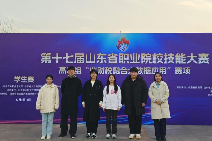 本网讯(会计学院 付筱惠)12月4日-8日,第十七届山东省职业院校技能大赛高职组“业财税融合大数据应用”赛项举行,必赢官网会计学院刘凯、付筱惠老师指导,姚雨孜、刘舒蓉、赵晨阳、王润鸿四名同学组成的学生代表队荣获二等奖;高琳、李真、刘凯、田原四名教师组成的教师代表队荣获三等奖。