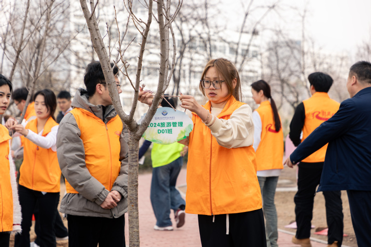 12棵樱花树、12个班级,2024级的班级代表与树苗“幸福结对”。此次活动既是班级凝聚力建设的具象化,更承载着学校对学生成长的殷切期盼。每一棵“幸福树”都将与青春岁月同生长,与学校发展共呼吸。