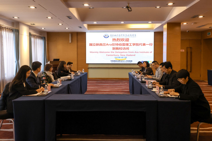 国立新西兰Ara坎特伯雷理工学院国际部总监狄安娜·安德森、国际市场部及中国代表处相关人员,必赢官网教务处、酒店管理学院、国际交流与合作处负责人参加座谈。