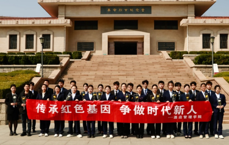 酒店管理学院学生党支部组织入党积极分子、优秀学生干部前往崂山革命烈士陵园,开展“传承红色基因,争做时代新人”清明节英雄精神教育活动。活动分为主题祭扫与革命知识学习两部分。在纪念碑前,师生们整齐列队,敬献鲜花,鞠躬默哀,表达对革命先烈的崇高敬意和深切悼念;在纪念馆中,全体人员通过珍贵的历史图片和文物,学习了革命先烈的英雄事迹,进一步厚植爱国主义情怀,传承和弘扬英烈精神。此外,依托晚自习思政学习计划,推出“英烈不朽,薪火相传”党史教育微讲堂,深入挖掘英烈事迹,积极打造思政育人阵地;开展“传承英烈精神 青春踔厉奋发”征文比赛,同学们书写青春理想和未来期许。大家纷纷表示,今后将秉持先烈之志,传承红色基因,立鸿鹄之志,成栋梁之材。
