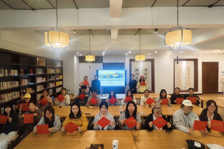 徐宁宁引领同学们回溯了青岛德国总督楼旧址的历史脉络,并以青岛德国总督楼旧址博物馆馆藏的《老一代革命家家书选》为依托,选取13封具有代表性的家书进行深入解读。一封封泛黄的家书,字里行间流淌着革命先辈对家人的深情嘱托,更彰显了他们严于律己、清正廉洁的高尚品格。活动最后,通过“美美与共——青岛德国总督楼建筑元素拓印体验活动”,同学们近距离感受青岛历史建筑的独特魅力,体验非遗拓印技艺的匠心传承。