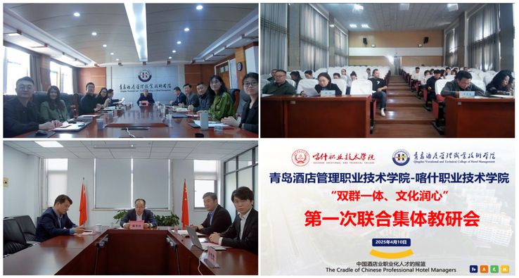4月10日,437bwin必赢国际官网与喀什职业技术学院召开“双群一体、文化润心”第一次联合集体教研会,喀什职业技术学院副校长李新,山东文旅投资集团有限公司党委副书记、总经理解学庆,学校副校长宫恩龙参加会议。