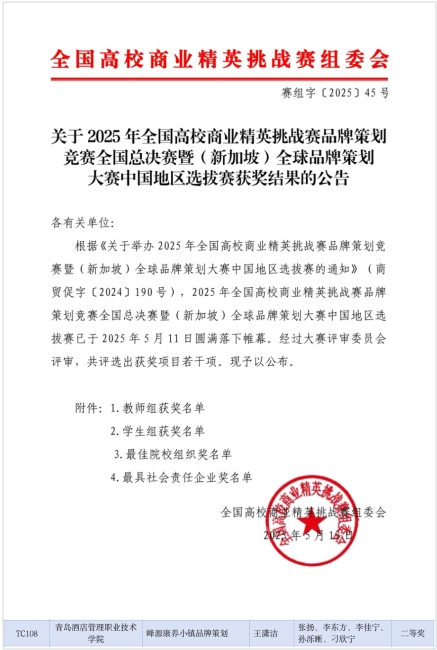 自2024年12月起,必赢官网参赛团队在指导老师王潇洁的带领下,系统学习了品牌策划理论知识,顺利通过知识赛考核,并在2025年3月的山东省总决赛中斩获一等奖,成功晋级全国总决赛。全国总决赛采用“策划书评审+视频展示及实时答辩”的形式,全面考查参赛团队的创新思维、专业能力和实战水平。