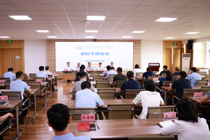 本网讯(党委(校长)办公室 宣传部)6月13日,学校召开干部会议,宣布省委关于学校党委主要负责同志调整的决定。集团党委副书记、董事张洪东,集团党委组织部(人力资源部)部长鞠磊,学校领导班子成员、中层干部参加会议。会议由党委副书记、校长姜玉鹏主持。