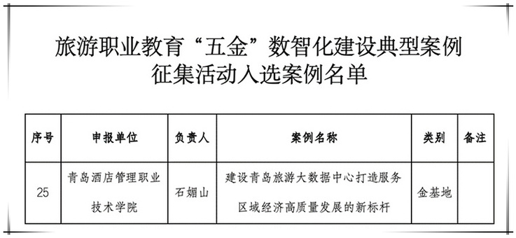 本网讯(文旅学院 刘平)近日,文化和旅游部公布了2025年旅游职业教育“五金”数智化建设典型案例征集活动入选案例名单,必赢官网文旅学院申报的案例《建设青岛旅游大数据中心 打造服务区域经济高质量发展的新标杆》入选金基地优秀案例。