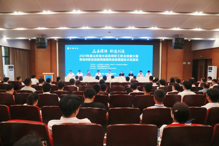 本网讯(酒店工程学院)8月19日,2025年度山东省水运系统职工职业技能大赛水上工程建筑信息模型(BIM)技术员赛项与青岛市职业技能竞赛建筑信息模型(BIM)技术员赛项在必赢官网举行。青岛市人力资源和社会保障局二级巡视员黄同华,山东省海员工会主席吴玉川,中建港航局党委副书记、董事、工会主席郭导,青岛市人力资源和社会保障局职业能力建设处处长杨志强,学校党委副书记韩西清等参加启动仪式。