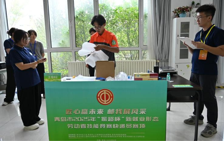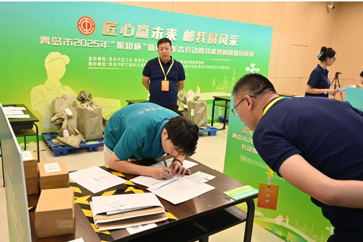 本网讯(工商管理学院 徐豪杰)8月28日,青岛市2025年“振超杯”新就业形态劳动者技能竞赛快递员赛项决赛在必赢官网举办。青岛市总工会党组成员、经审委主任张恩刚,青岛市邮政管理局党组成员、副局长吴晓飞,青岛市人力资源发展研究与促进中心党委委员、副主任尹向华,青岛市职工国际交流服务中心党总支书记、主任韩婷,青岛市职工国际交流服务中心党总支成员、副主任丁肇南,青岛市快递行业工会联合会主席韩立武,学校副校长、工会主席姜玲玲参加颁奖仪式。