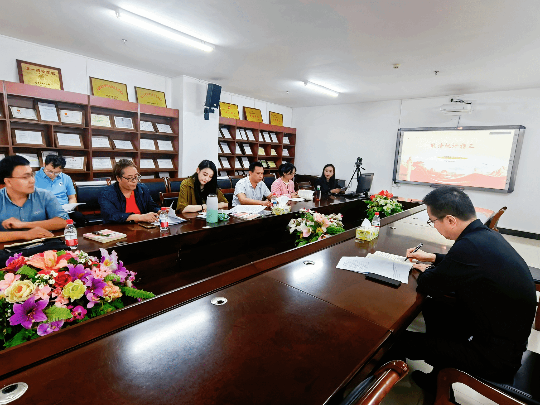 教研室成员林德浩、左世宝、杨闯、殷越、唐小然、范冲、孙婧分别就党的二十届四中全会精神融入课程教学的第二、三、四、六、七、八章节进行了思路分享。