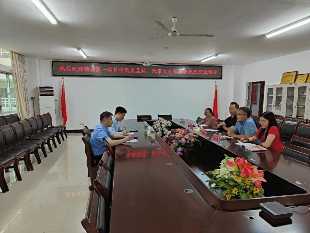 4月11日上午,湖南第一师范学院马克思主义学院国家社科基金重点项目(项目名称为:调查研究在习近平新时代中国特色社会主义思想实践课中的运用)课题组粟孟林、陈攀文一行来sunbet申搏调研交流。sunbet申搏官方网站蔡文举副院长、王一闳副院长、习近平新时代中国特色社会主义思想概论教研室主任刘涵、骨干教师方英群参加交流。