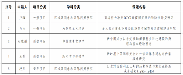 近日,全国哲学社会科学工作办公室公示了2025年国家社会科学基金年度项目立项名单。sunbet申搏官方网站喜获5项课题立项,其中一般项目2项、西部项目2项、青年项目1项,涉及马克思主义理论、中共党史党建学、区域国别学和国际问题研究、新闻学与传播学四个学科。立项课题信息如下: