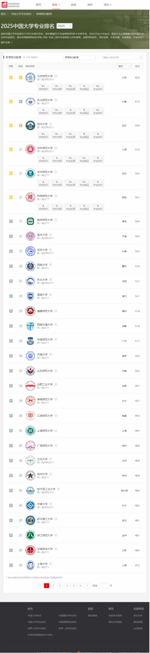2025年6月18日,高等教育专业评价机构软科正式发布2025“软科中国大学专业排名”。sunbet申搏官方网站思想政治教育本科专业以全国第12名的成绩再次进入A类行列,继2022年31名、2023年28名、2024年23名,排名继续稳步提升。