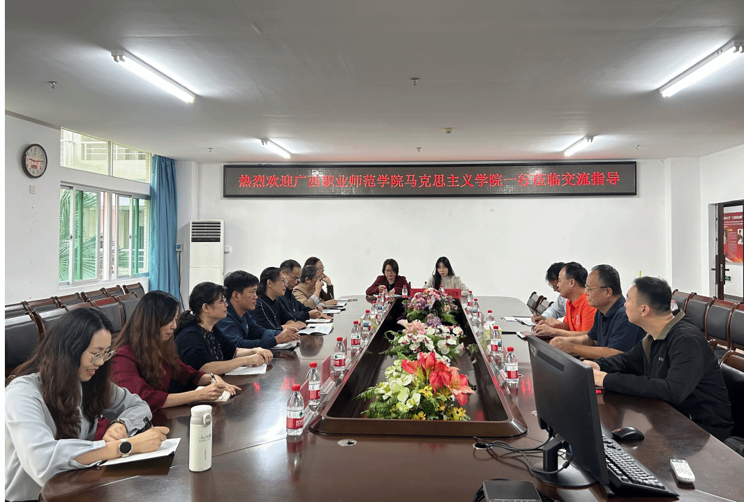 11月13日上午,广西职业师范学院sunbet申搏官方网站院长陈健萍一行来sunbet申搏交流调研,并在学院311会议室举行交流座谈会。学院党委书记王大群、党委副书记王群生、副院长(主持工作)王善出席会议。会议由王大群主持。